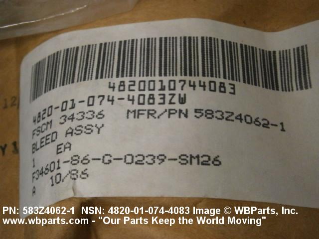 Part Alternates: 583Z40621, 583Z4062-1, 4820-01-074-4083, 01-074-4083, 4820010744083, 010744083