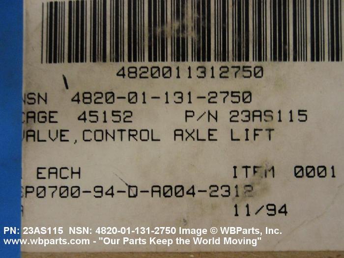Part Alternates: 23AS115, 4820-01-131-2750, 01-131-2750, 4820011312750, 011312750