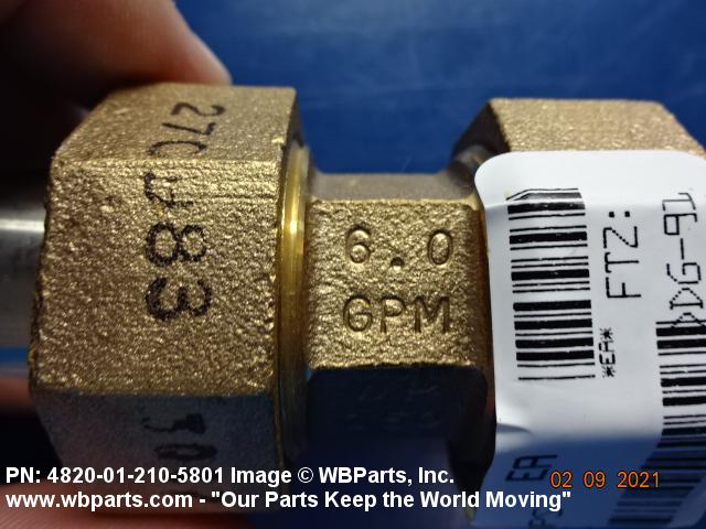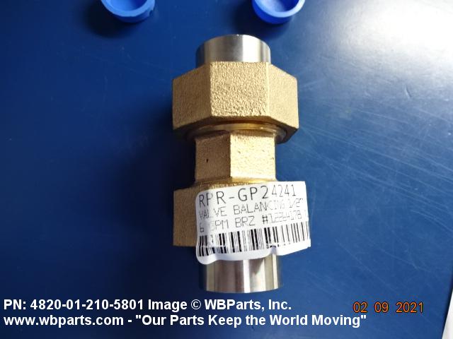 4820-01-210-5801 A valve specifically designed to automatically maintain a predetermined discharge flow rate which may be adjustable within a specific range. It is designed to be used with various fluids and may be preset and/or adjustable. It may be in-line or cartridge (manifold) design. Excludes VALVE, REGULATING, FEED WATER; VALVE, REGULATING, FLUID PRESSURE; VALVE, REGULATING, FUEL OIL; VALVE, REGULATING, OIL PRESSURE, AUTOMATIC PILOT; VAVLE, REGULATING, TEMPERATURE; VALVE, ANGLE; and VALVE, GLOBE.