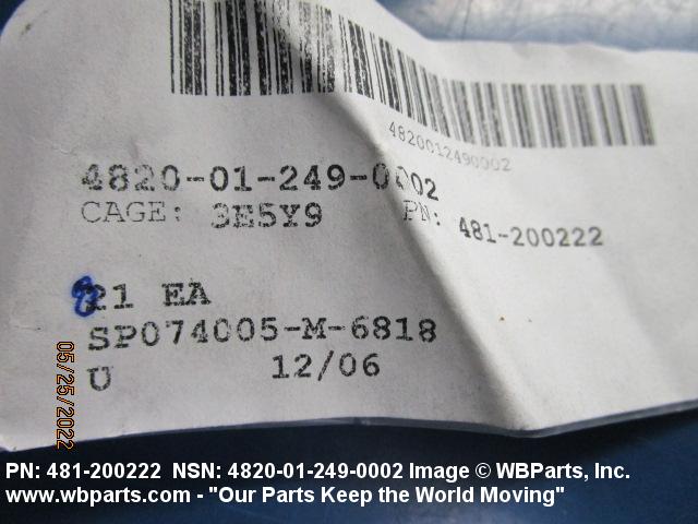 NSN 4820-01-249-0002 481-200222, 01-249-0002, 481200222