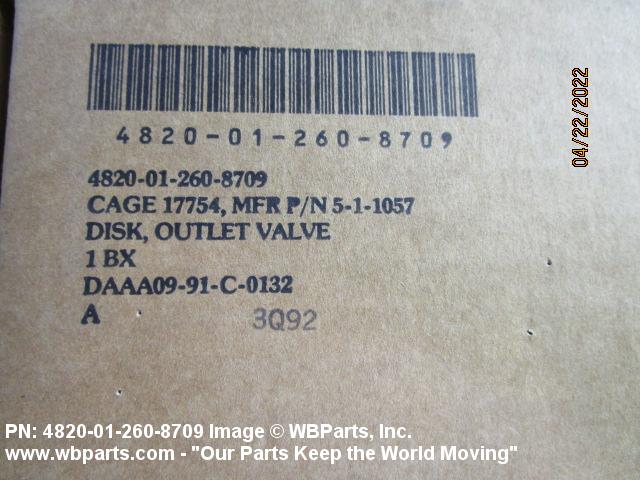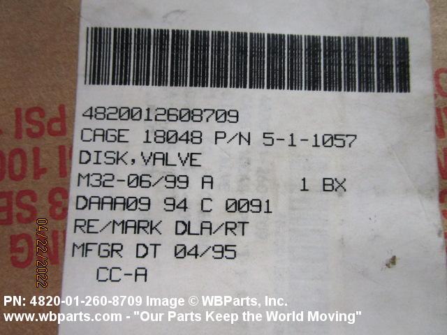 NSN 4820-01-260-8709 511057, 5-1-1057, 01-260-8709