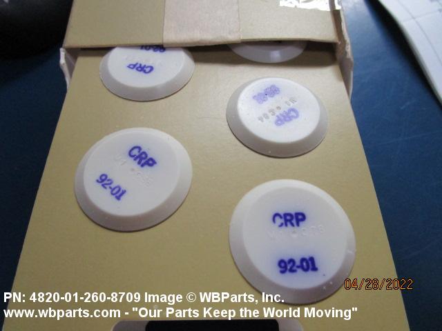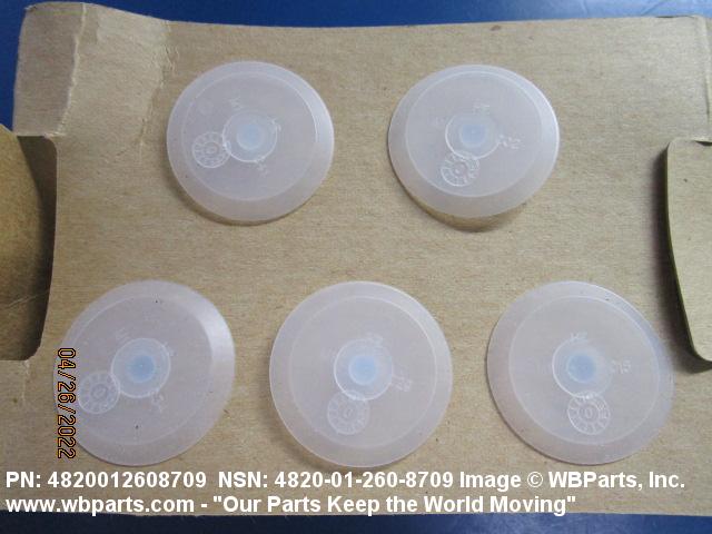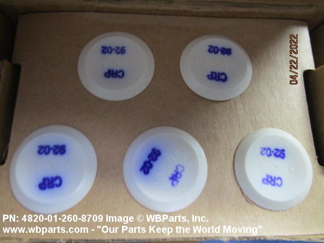 4820-01-260-8709 An item of various shapes (usually circular, conical, cylindrical, or rectangular) used to prevent or regulate the flow of liquids or gases through the valve. May include a retainer, screw, holder, and the like.20616500058Aircraft Hydraulic, Vacuum, and De-icing System Components16600062Aircraft Air Conditioning, Heating, and Pressurizing Equipment29150064Engine Fuel System Components, Aircraft and Missile Prime Movers48100015Valves, Powered48200018Valves, Nonpowered65150057Medical and Surgical Instruments, Equipment, and Supplies