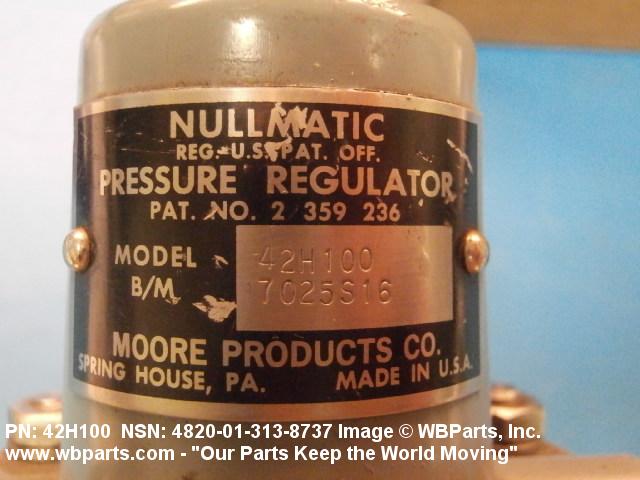4820-01-313-8737 A valve designed to automatically maintain within close limits a predetermined outlet pressure which may be adjustable within a specified range regardless of the higher fluctuating or constant inlet pressure. It is designed for use with compressed gas(es) and various liquids and may include gauges. It may be inline or cartridge (manifold) design. Excludes REGULATOR, PRESSURE, MEDICAL GAS ADMINISTRATION APPARATUS; REGULATOR, OXYGEN, BAROMETRIC CONTINUOUS FLOW; REGULATOR, OXYGEN DEMAND; REGULATOR, OXYGEN DILUTER DEMAND; and valve(1), fluid pressure regulating, aircraft.20248100015Valves, Powered48200018Valves, Nonpowered
