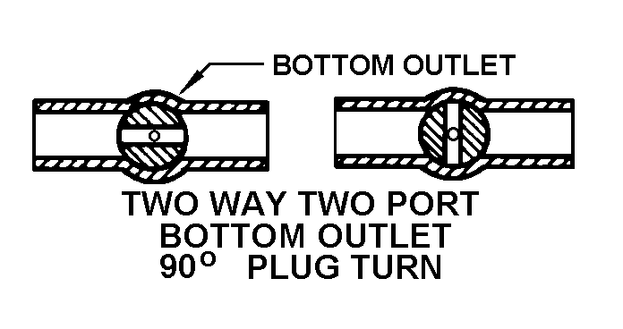 | FLOW STYLE | F2 TWO-WAY TWO PORT BOTTOM OUTLET 90 DEGREE PLUG TURN |