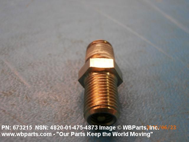 4820-01-475-4873 A valve, designed for attachment to pressure tanks and/or mechanical equipment for the purpose of permitting an increase, decrease, and the gaging of pressure (similar to tire valves) within a confining chamber carrying compressed air, gases or oil.