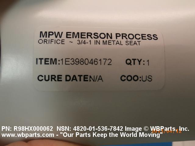 Part Alternates: R98HX000062, 4820-01-536-7842, 01-536-7842, 4820015367842, 015367842