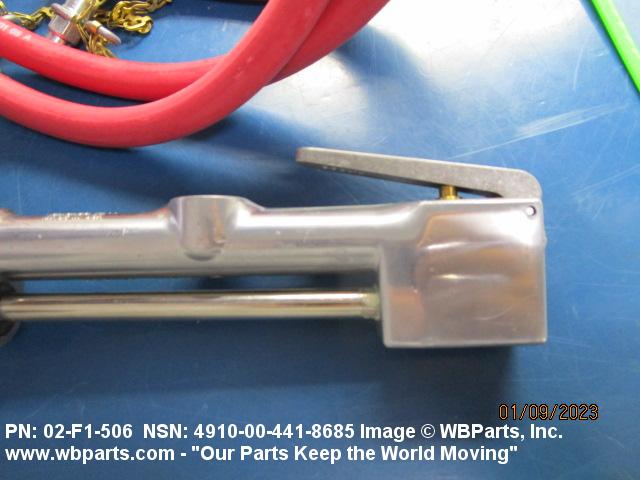| SPECIAL FEATURES | 1 BLEEDER VALE BETWEEN INFLATOR GAGE AND HOSE,1 VALVE THREADED 0.482-26 FOR CHUCK,OVERALL LG OF ITEM 132.000 PLUS OR MINUS 3.000,ISSUED WITHOUT DUAL FOOT CHUCK |