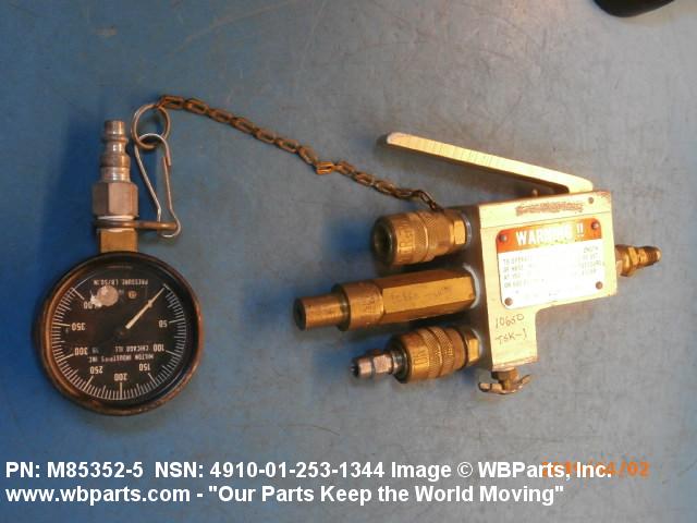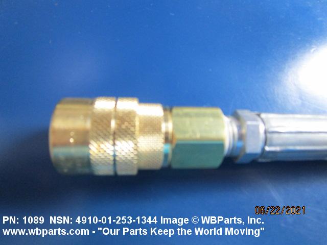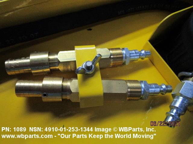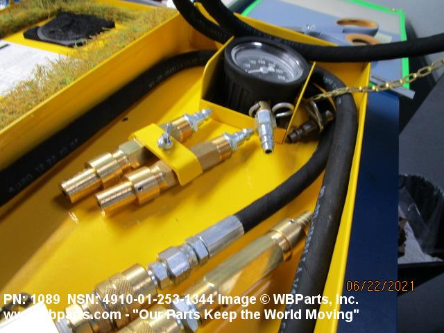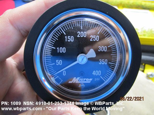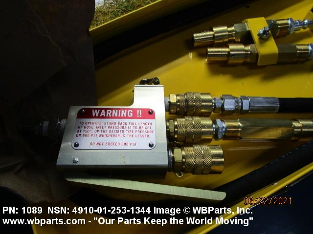 4910-01-253-1344 An item consisting essentially of a pneumatic tire pressure gage with an attached length of hose equipped with device for supplying compressed air to a tire valve stem. In service the item is connected to an air supply hose.