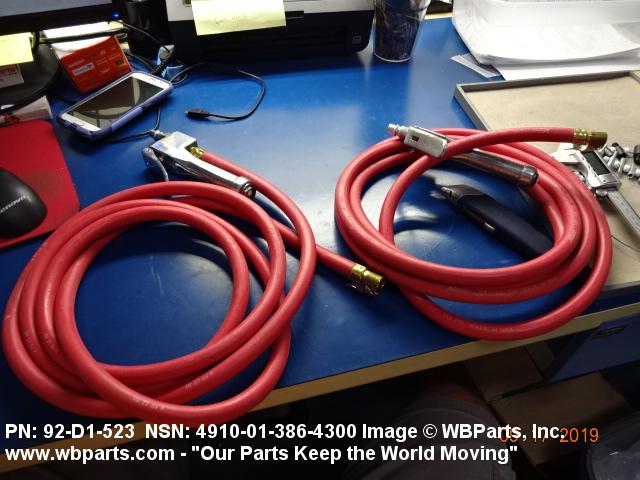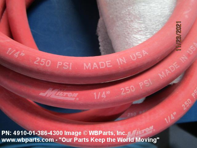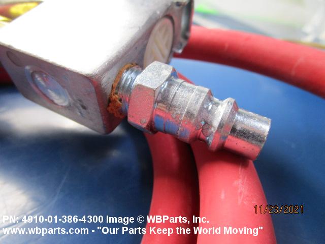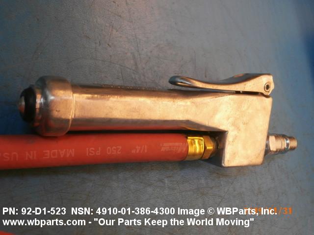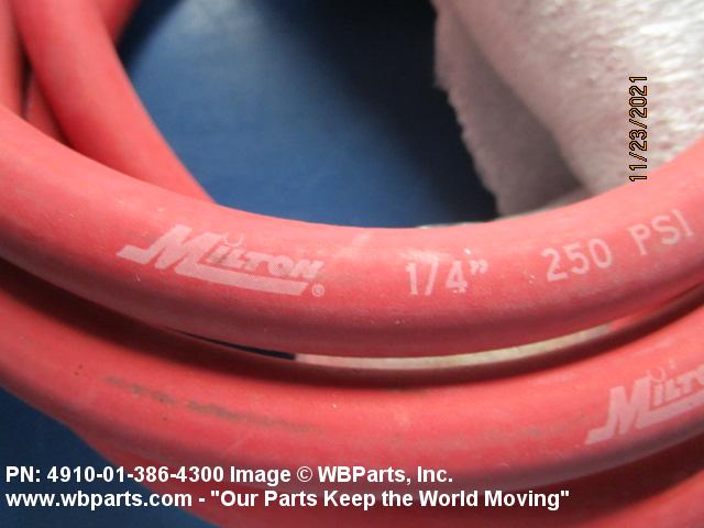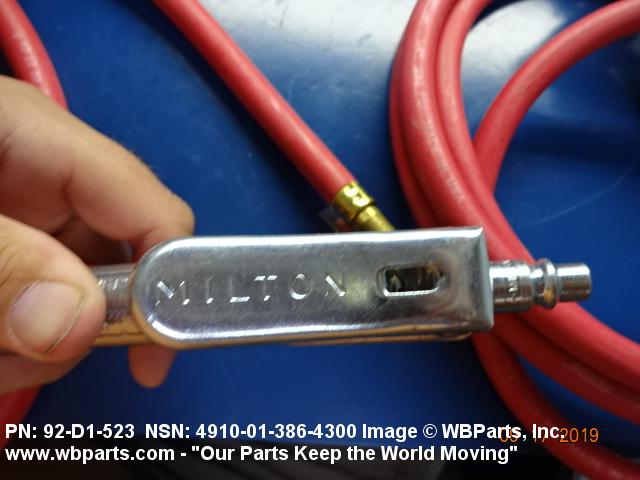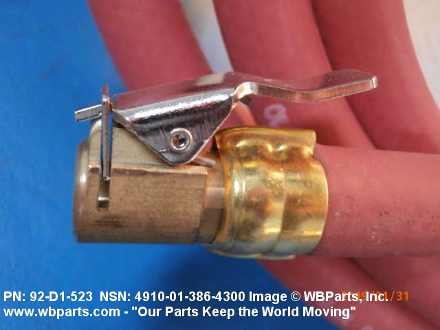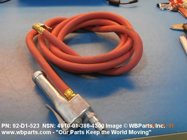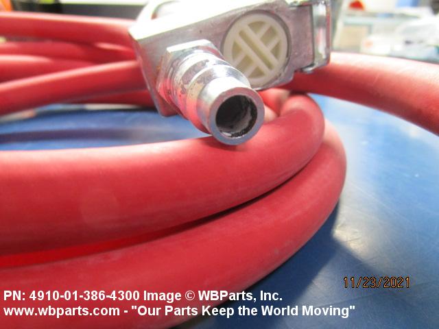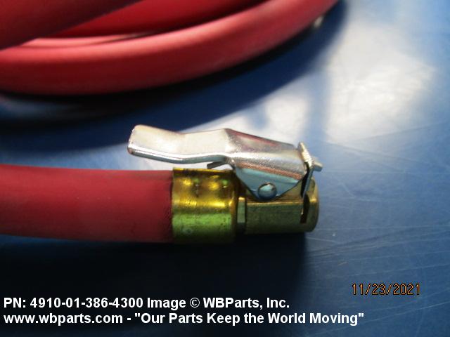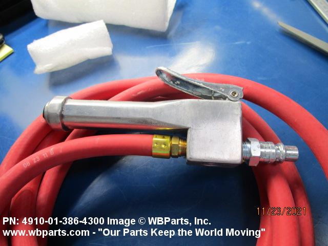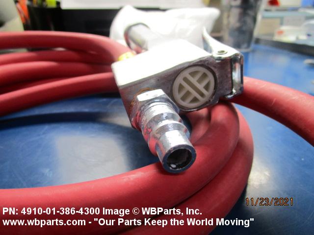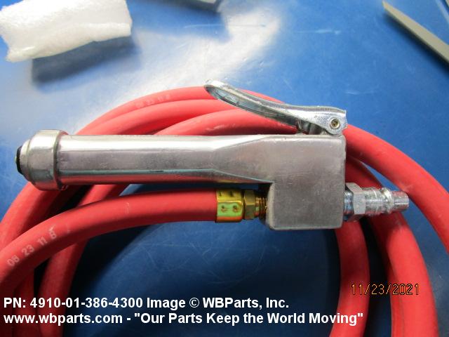 4910-01-386-4300 An item consisting essentially of a pneumatic tire pressure gage with an attached length of hose equipped with device for supplying compressed air to a tire valve stem. In service the item is connected to an air supply hose.