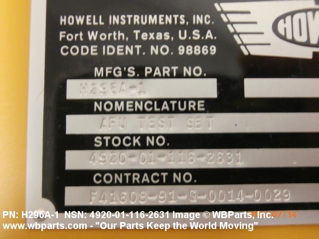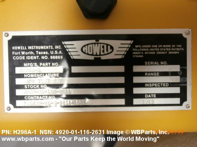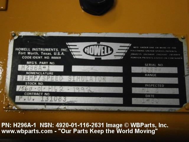 | H296A-1 | 98869 | HOWELL INSTRUMENTS, INC. |