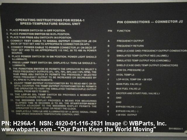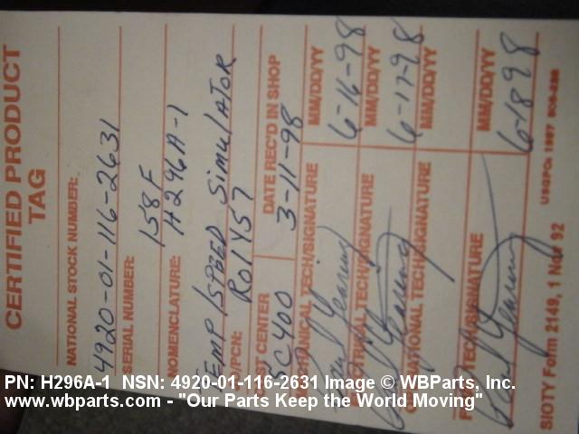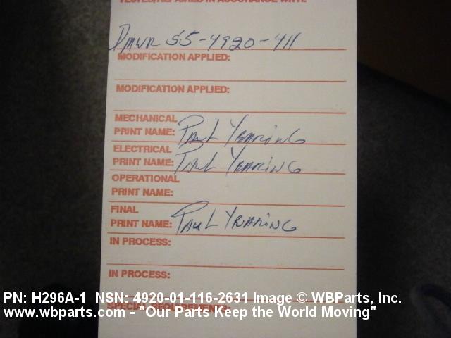 Part Alternates: H296A1, H296A-1, 4920-01-116-2631, 01-116-2631, 4920011162631, 011162631