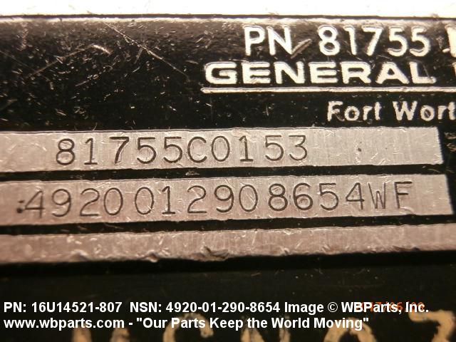 Part Alternates: 16U14521807, 16U14521-807, 4920-01-290-8654, 01-290-8654, 4920012908654, 012908654