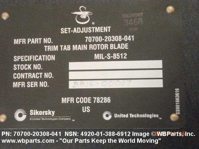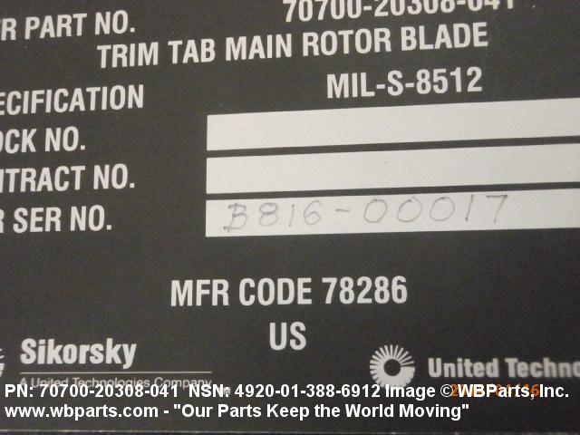 Part Alternates: 70700-20308-041, 4920-01-388-6912, 01-388-6912, 4920013886912, 7070020308041, 013886912