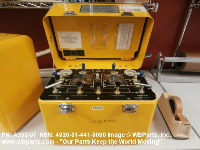 4920-01-441-9090 A device designed to check the pitot and static systems of aircraft, guided missiles, rockets or the like for leaks. It may also be used to calibrate air speed indicators, altimeters, rate of climb indicators and machmeters.20311900057Specialized Test and Handling Equipment, Nuclear Ordnance49200058Aircraft Maintenance and Repair Shop Specialized Equipment49350070Guided Missile Maintenance, Repair, and Checkout Specialized Equipment