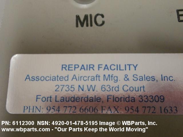 Part Alternates: 6112100, 6112300, 4920-01-478-5195, 01-478-5195, 4920014785195, 014785195