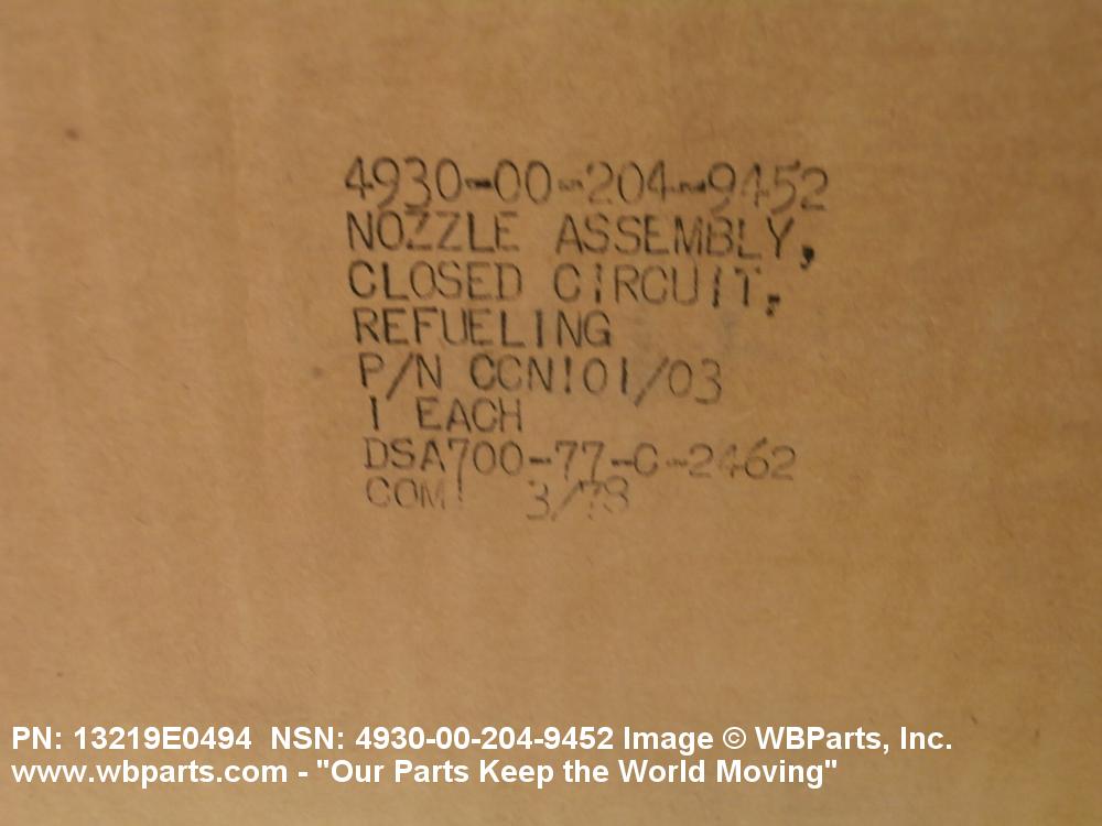Part Alternates: CCN101/03, CCN10103, 13219E0494, 4930-00-204-9452, 00-204-9452, 4930002049452, 002049452