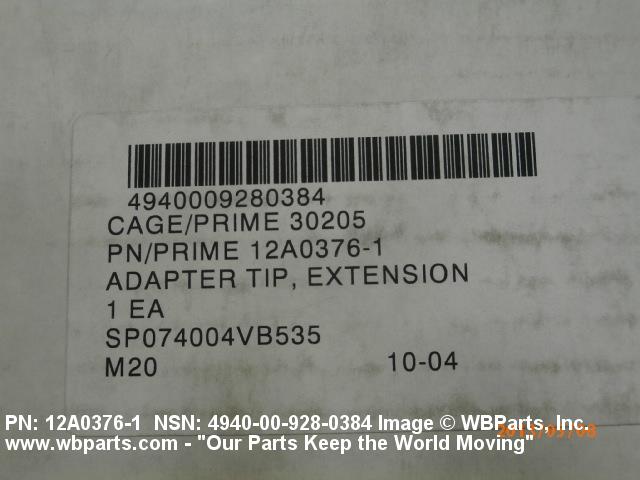 Part Alternates: 12A03761, 12A0376-1, 4940-00-928-0384, 00-928-0384, 4940009280384, 009280384