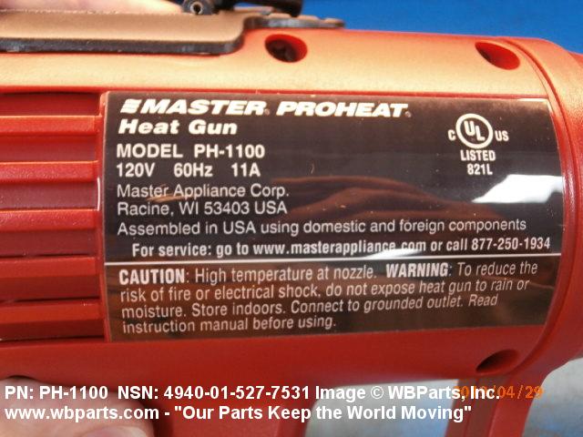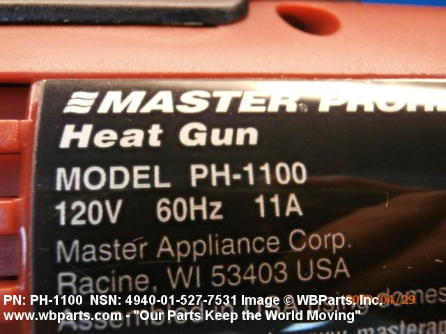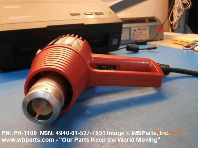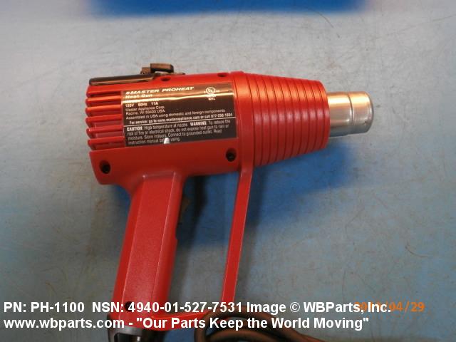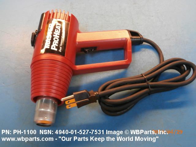 4940-01-527-7531 An electrically driven pistol-shaped device, normally hand-held, used to deliver hot air in excess of 100 degrees Celsius for drying, curing, forming, activating, softening, shrinking, and the like. The operating parts are usually housed in a protective inclosure. It may include air flow directing accessories and a means to hang the item. Excludes DRIER, ELECTRIC, HAND.