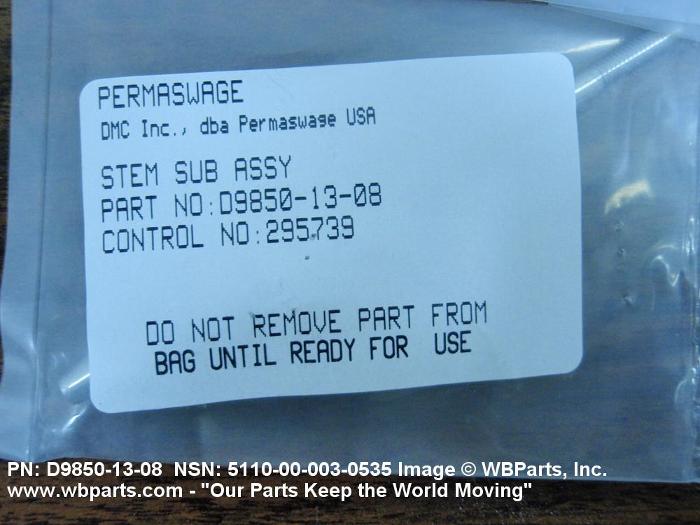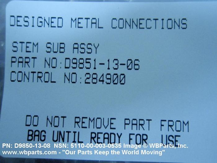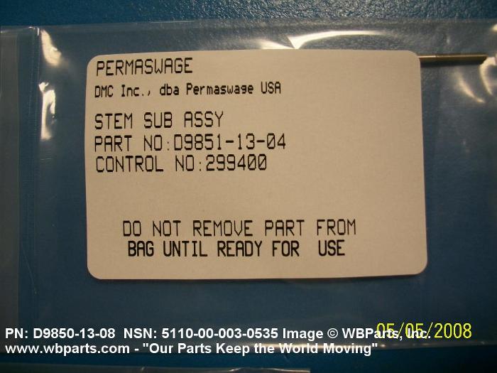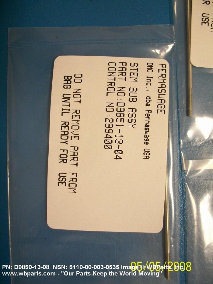 Part Alternates: D98501308, D9850-13-08, 5110-00-003-0535, 00-003-0535, 5110000030535, 000030535