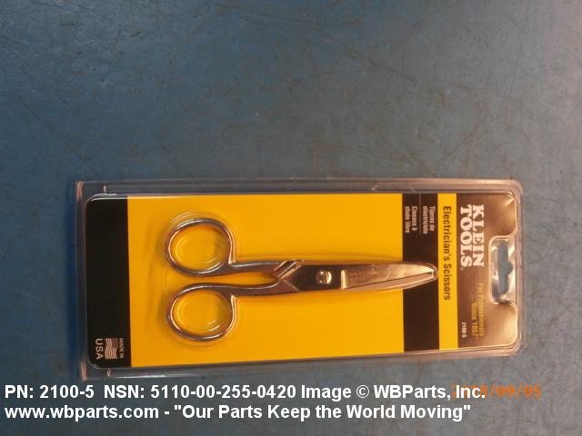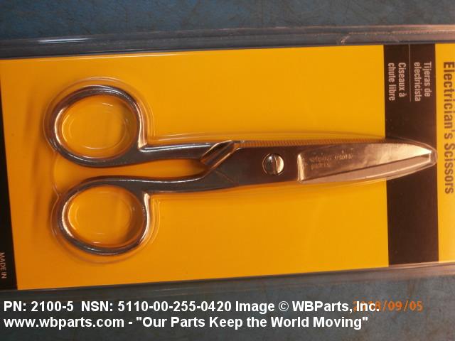 5110-00-255-0420 Scissors having specially hard tempered cutting edges for cutting wire, insulation and light sheet metal. The blade backs have a scraper edge, file and/or wire scraping notch.