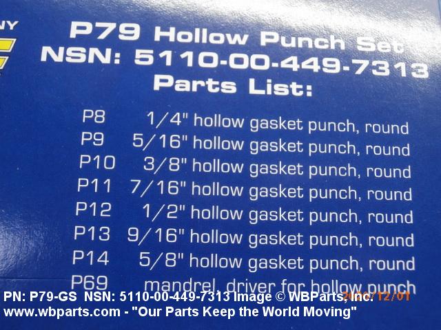 | NONSUPPLY ITEMS AND QUANTITIES | CONTAINS MANDREL AND PUNCHES SIZE 1/4, 5/16, 3/8, 7/16, 1/2, 9/16, AND 5/8 IN. |