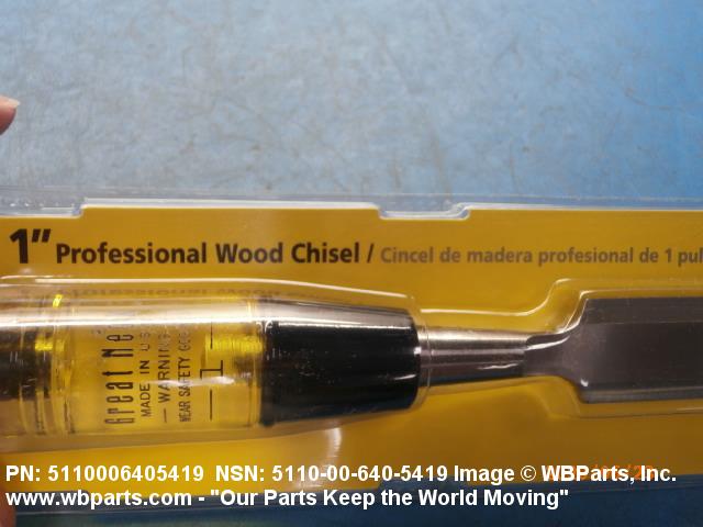5110-00-640-5419 A wood-cutting hand tool consisting of a straight steel blade, generally less than 8 inches (203.2 mm) long, measured from the square cutting edge to the shoulder where the width of the blade is reduced. A nonmetallic handle is fixed to a tang or socket. Excludes CHISEL, BUTT, WOODWORKING.
