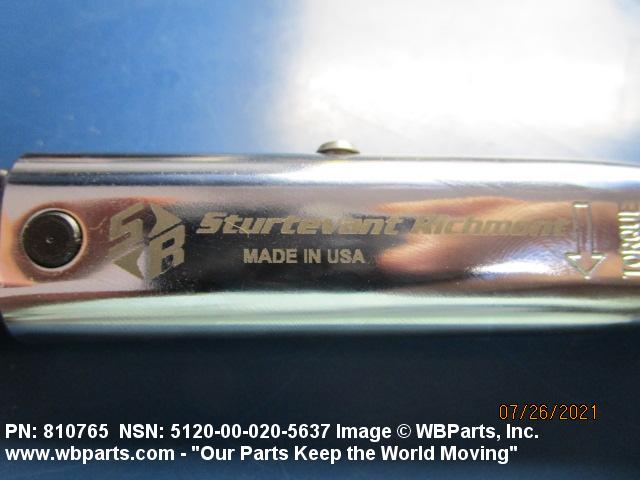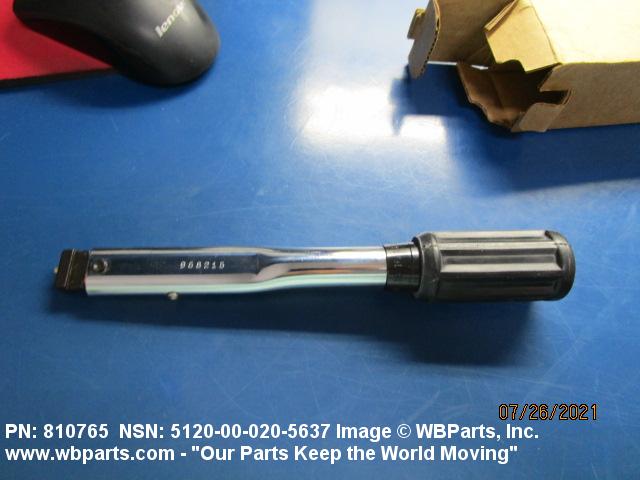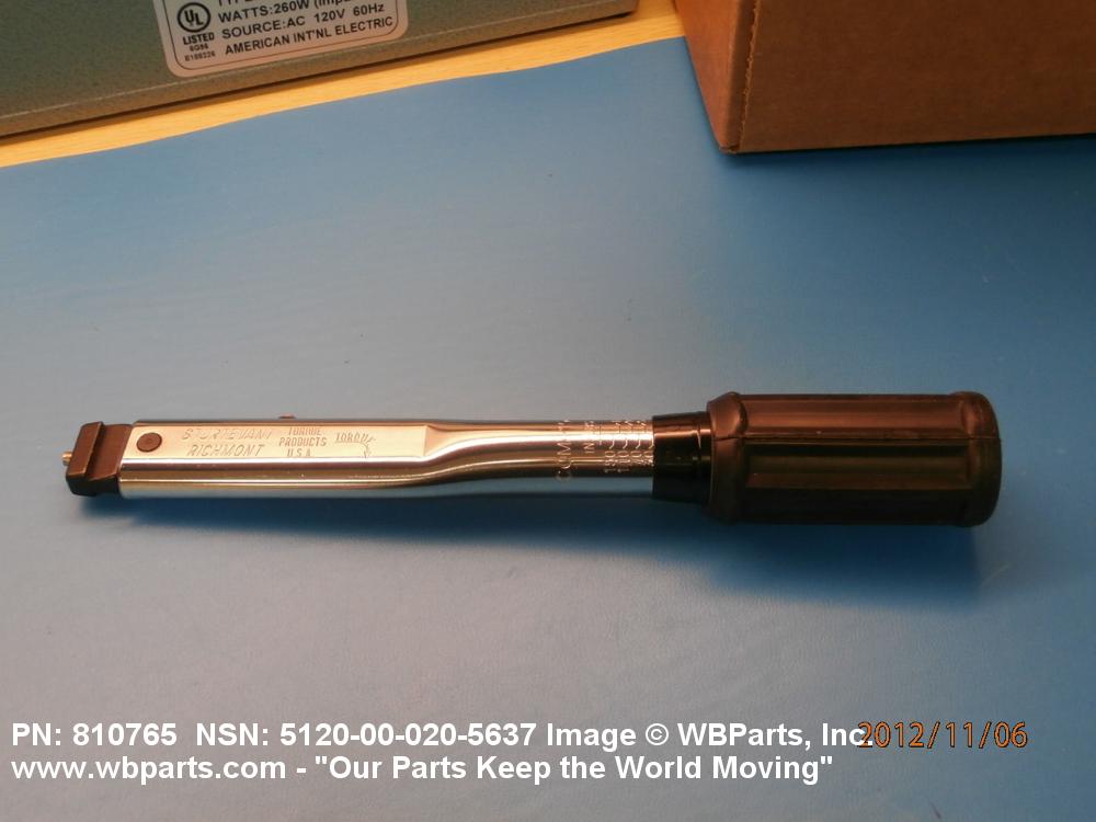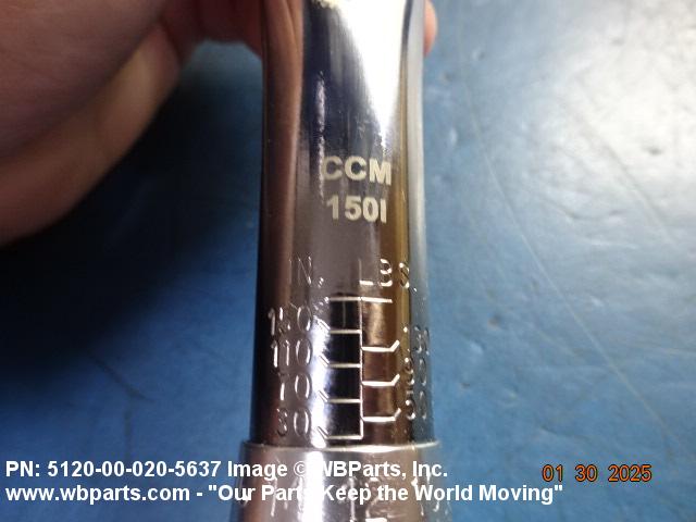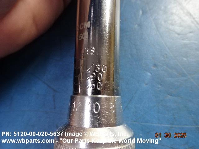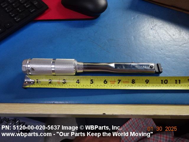 5120-00-020-5637 A manual tool for tightening various fasteners to a precise torque value. Consists of a handle and drive to accommodate female square drive sockets and other types of wrenching adapters. Torque value may be manually set and adjusted by user or may be provided as preset for production line use. A signaling device is generally provided to indicate when set torque value is reached. Handle is swung at right angle to axis of fastener rotation to apply torque. For items with handles that are spun in-line with axis of fastener rotation to apply torque, see SCREWDRIVER, TORQUE.2025120000065200043Dental Instruments, Equipment, and Supplies