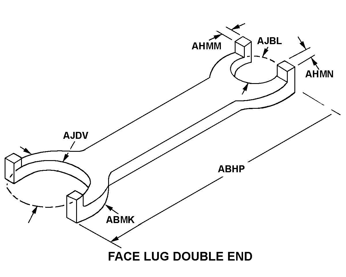 5120-00-026-6403 A tool on which are located one or more pins, lugs, holes, keyways, or hooks, designed to engage matching holes, slots, or projections on a coupling, nut, or the like; for exerting a torsional force, concentrated at a point or points of a mating part, tending to turn the mating part about an axis. The drive end may have a hole for a separate straight bar used as a handle. Excludes WRENCH, BUNG.