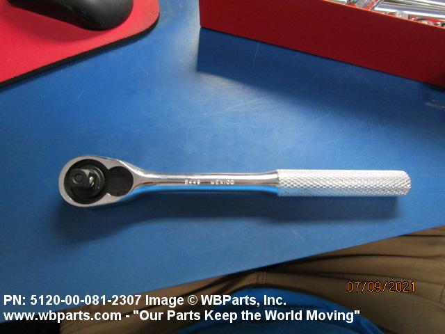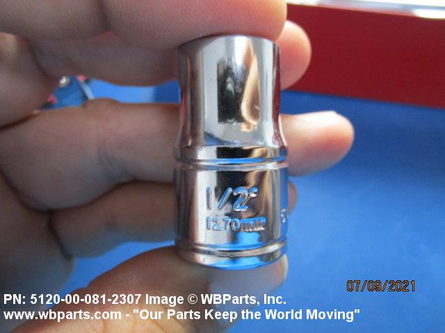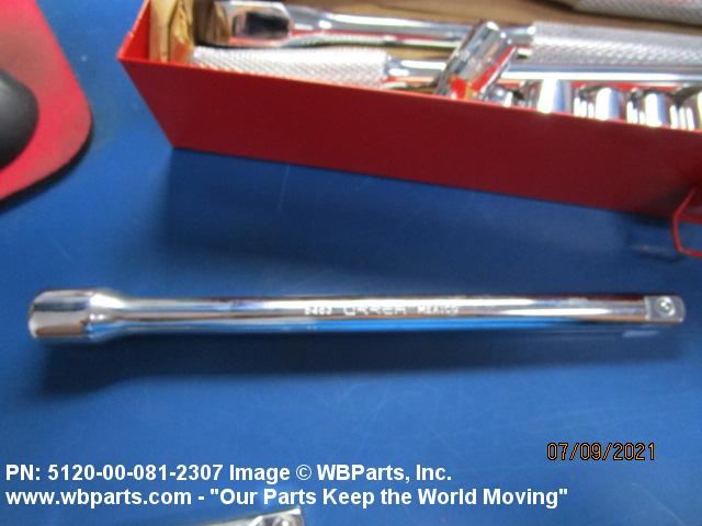 5120-00-081-2307 An assortment of various sizes of WRENCH, SOCKET and/or combinations of SOCKET, SOCKET WRENCH and HANDLE, SOCKET WRENCH. It may include related attachments such as ADAPTER, SOCKET WRENCH; EXTENSION, SOCKET WRENCH; BAR, SOCKET WRENCH HANDLE; RATCHET ATTACHMENT, SOCKET WRENCH; UNIVERSAL JOINT, SOCKET WRENCH and BIT, SCREWDRIVER.20251200032Hand Tools, Nonedged, Nonpowered51300024Hand Tools, Power Driven
