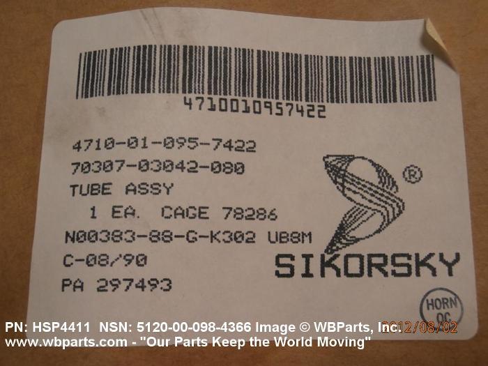 Part Alternates: HSP4411, PWA7488 , 0984366, 098-4366, 5120-00-098-4366, 00-098-4366, 5120000984366, 000984366
