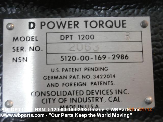 | DPT-1200 | 08194 | CONSOLIDATED DEVICES INC. DBA CDI TORQUE PRODUCTS DIV SNAP-ON |