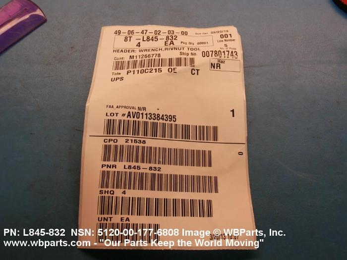 | C-845-832 | 03481 | BFGOODRICH CO THE AEROSPACE DIV |