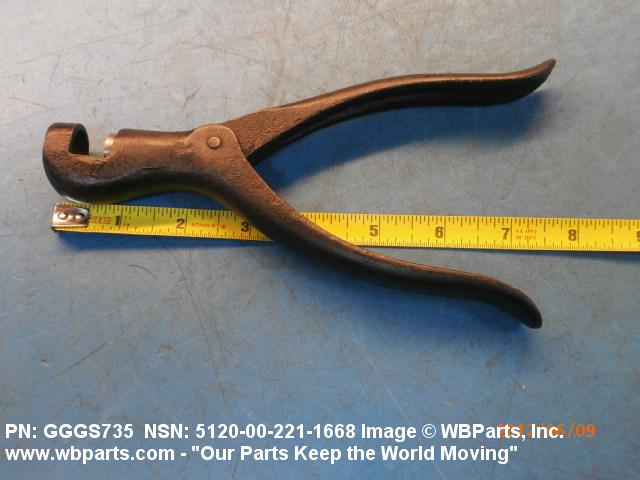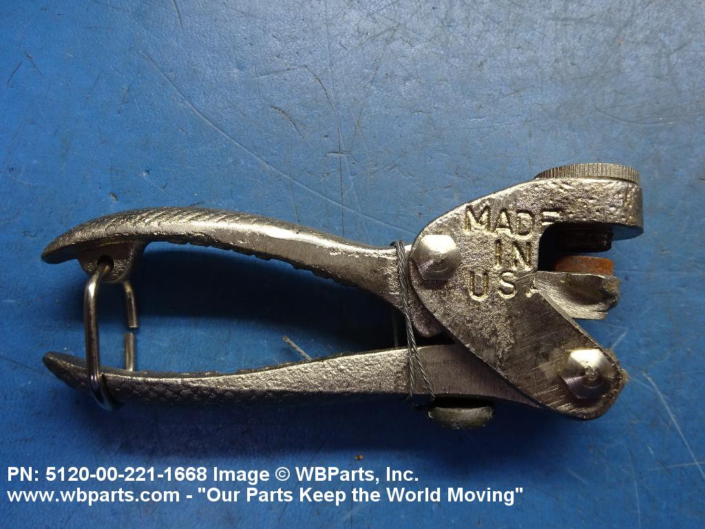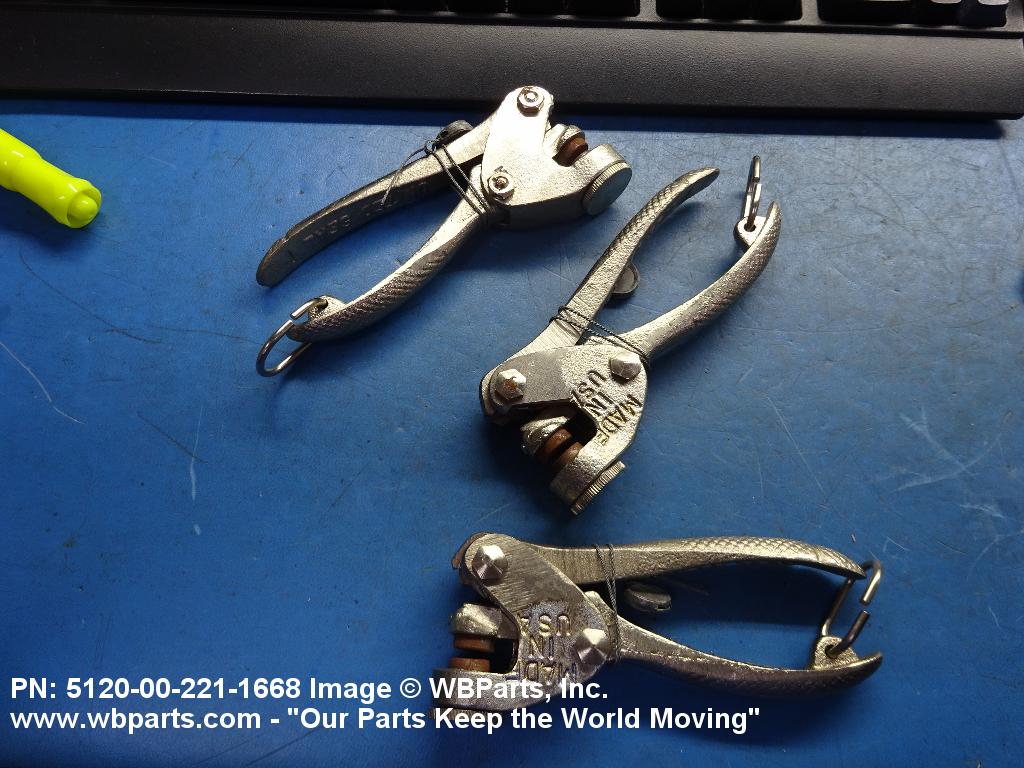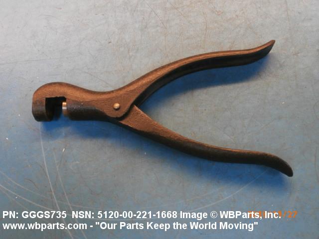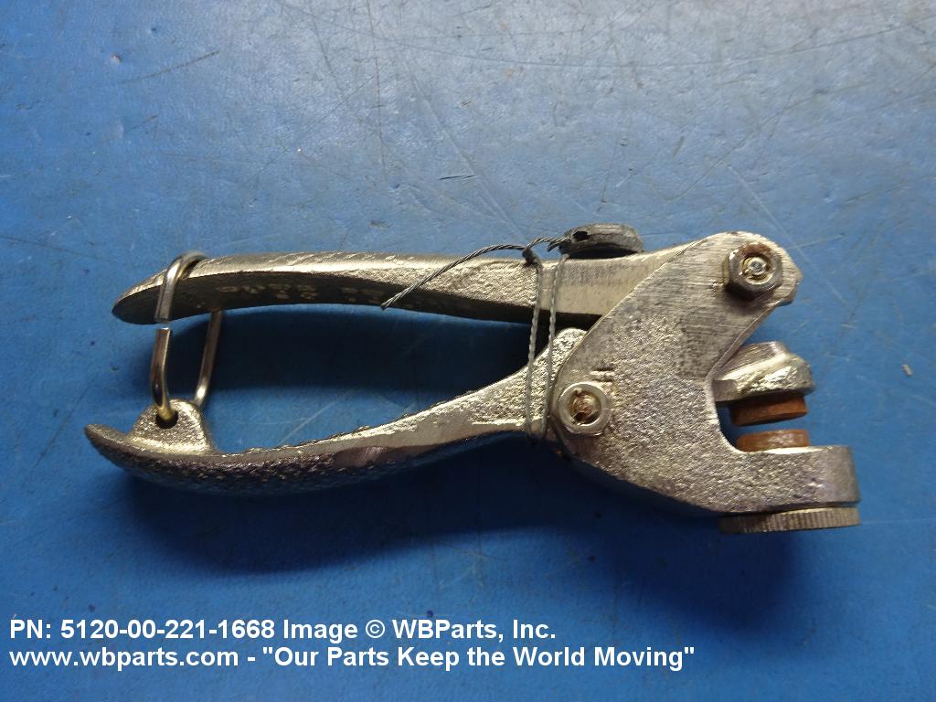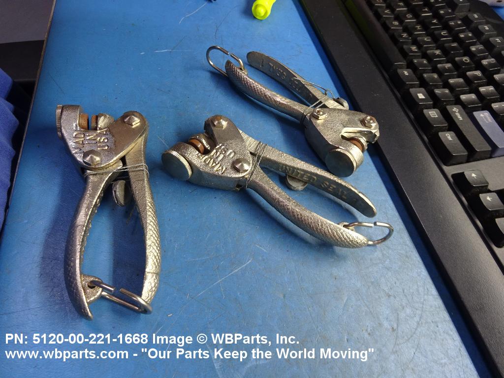5120-00-221-1668 A plierlike tool having fixed or removable dies which may be engraved with any legend, designed primarily for compressing or crimping lead seals over the ends of wire or metal bands to provide security against tampering.
