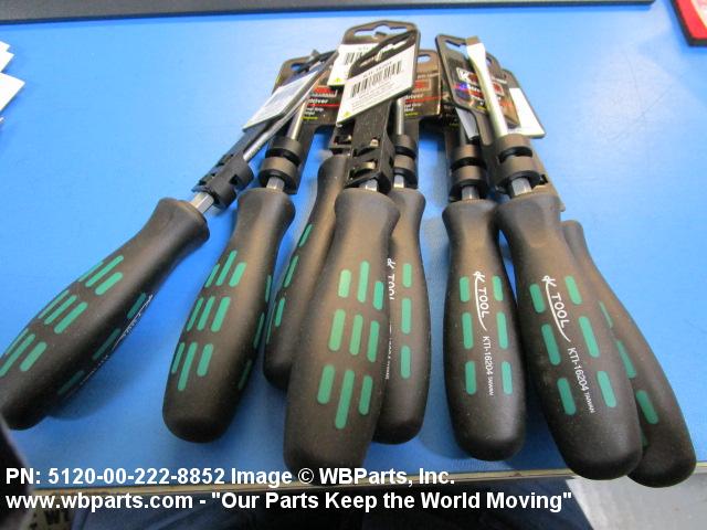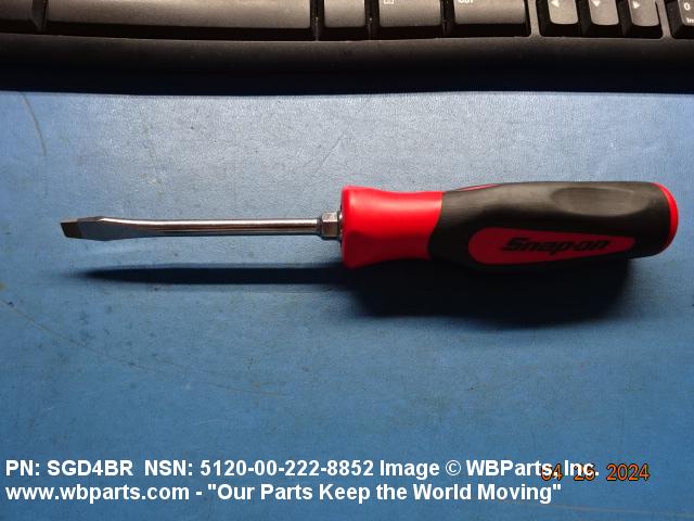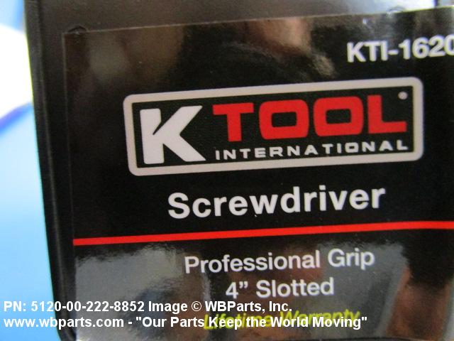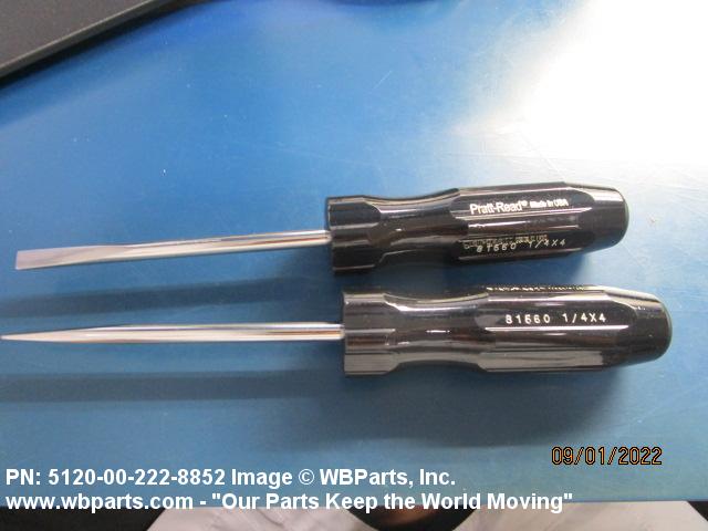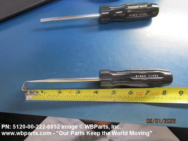 5120-00-222-8852 A manual screwdriver having a single, nonremovable, flat tip blade. The blade has a flared or straight sided tip. For items having more than one blade, see SCREWDRIVER BIT SET AND HANDLE. Excludes SCREWDRIVER, JEWELER'S SWIVEL KNOB; SCREWDRIVER, RATCHET; and SCREWDRIVER, SPARK TESTING.
