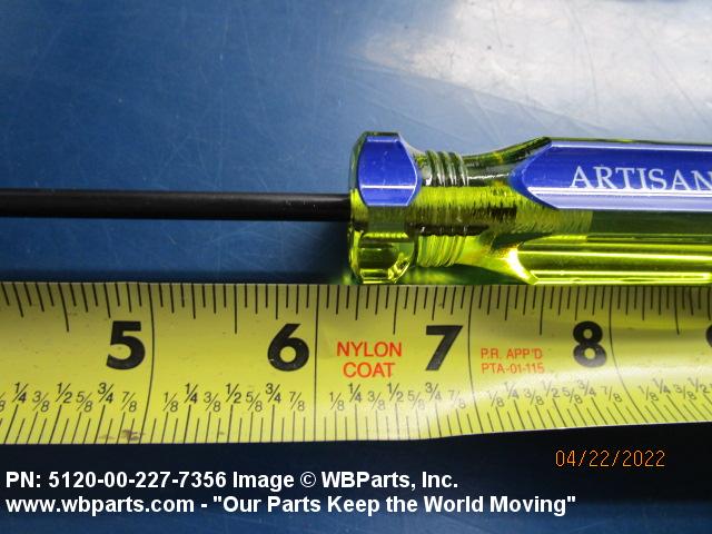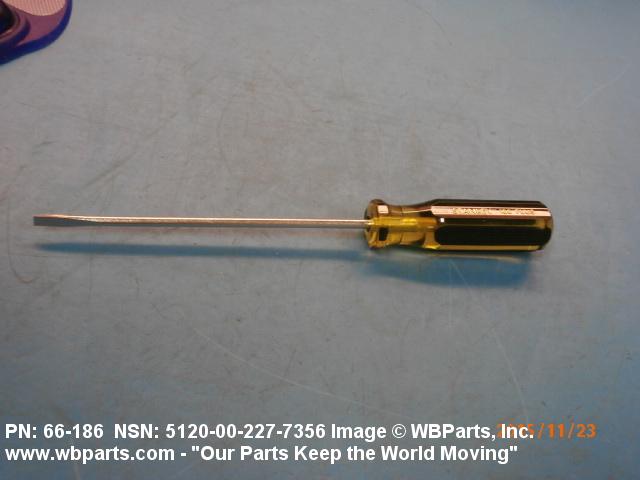 5120-00-227-7356 A manual screwdriver having a single, nonremovable, flat tip blade. The blade has a flared or straight sided tip. For items having more than one blade, see SCREWDRIVER BIT SET AND HANDLE. Excludes SCREWDRIVER, JEWELER'S SWIVEL KNOB; SCREWDRIVER, RATCHET; and SCREWDRIVER, SPARK TESTING.