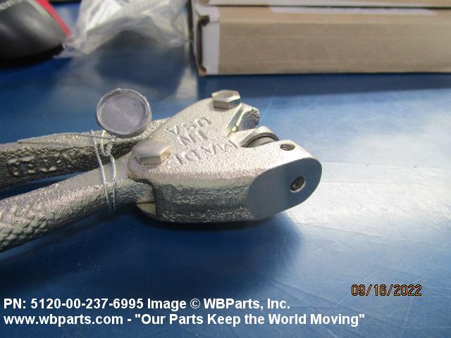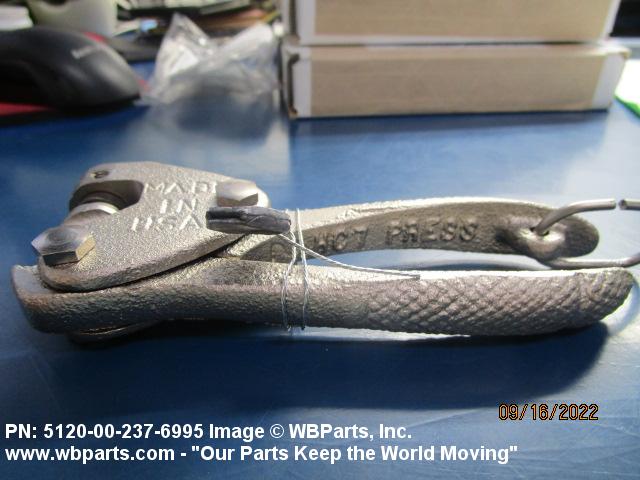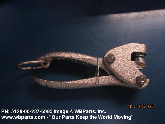 5120-00-237-6995 A plierlike tool having fixed or removable dies which may be engraved with any legend, designed primarily for compressing or crimping lead seals over the ends of wire or metal bands to provide security against tampering.