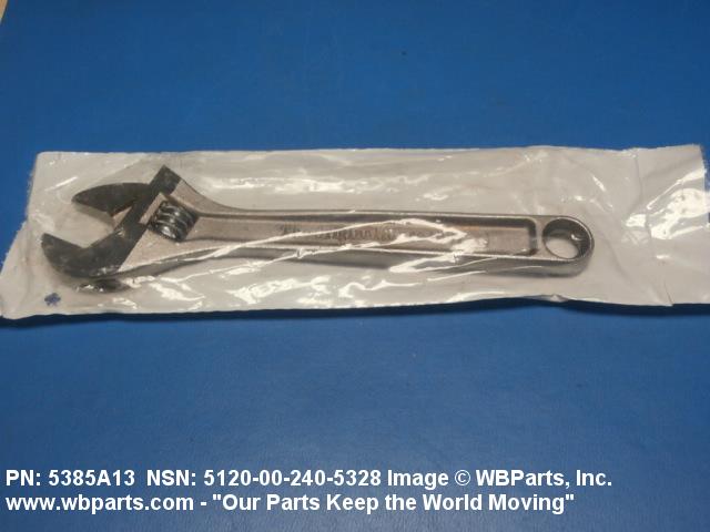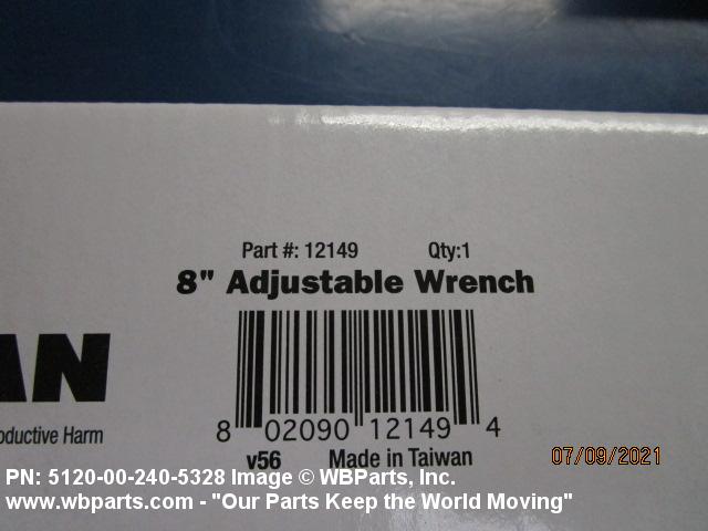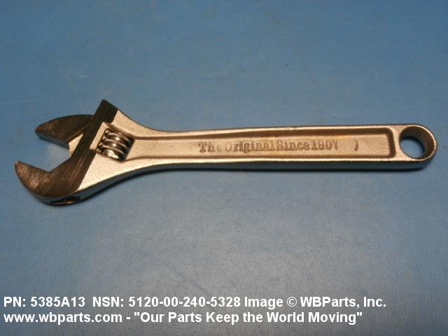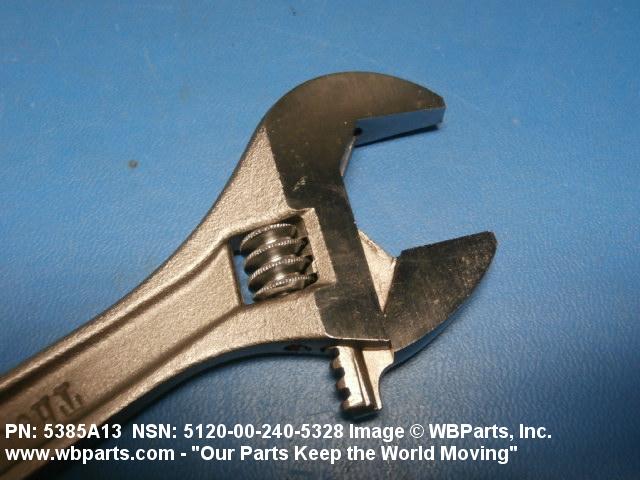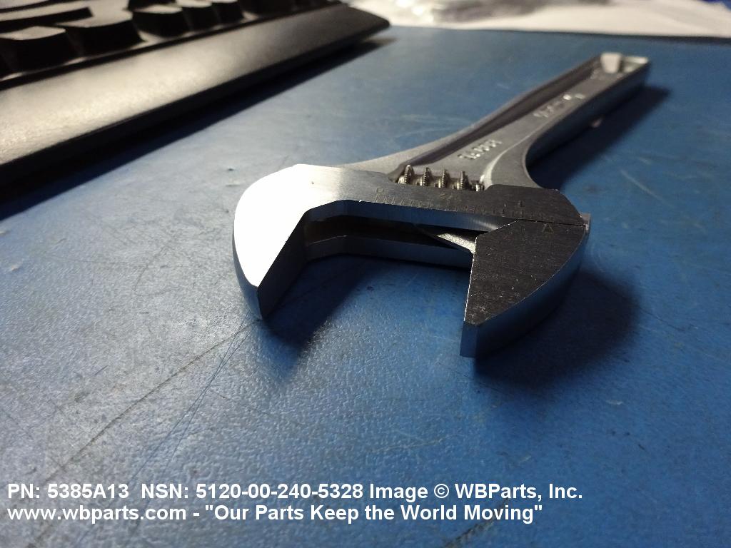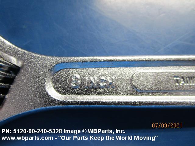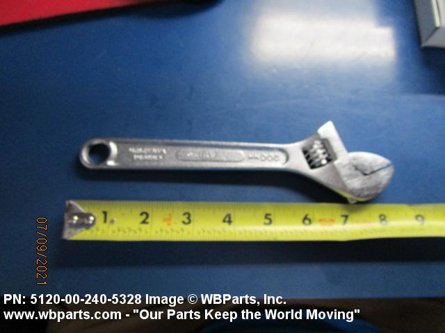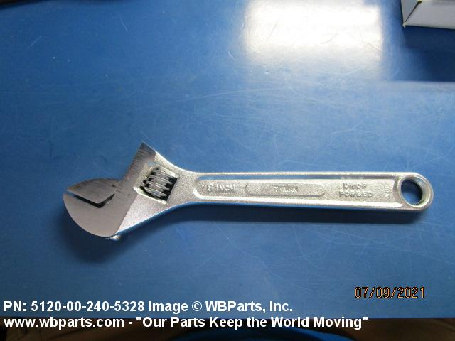 5120-00-240-5328 A single or double end wrench having a frame and upper jaw(s) of one piece construction. It incorporates a mechanism designed to adjust the lower jaw to the desired size of wrench opening. The jaws are flat, parallel, and smooth. The handle is straight or S shaped.
