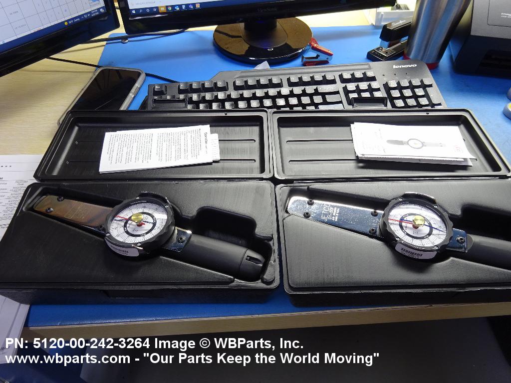 5120-00-242-3264 A manual tool for tightening various fasteners to a precise torque value. Consists of a handle and drive to accommodate female square drive sockets and other types of wrenching adapters. Torque value may be manually set and adjusted by user or may be provided as preset for production line use. A signaling device is generally provided to indicate when set torque value is reached. Handle is swung at right angle to axis of fastener rotation to apply torque. For items with handles that are spun in-line with axis of fastener rotation to apply torque, see SCREWDRIVER, TORQUE.2025120000065200043Dental Instruments, Equipment, and Supplies