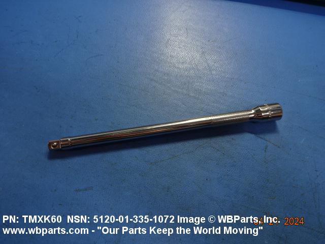 5120-00-243-7325 An attachment for extending the drive length of socket wrenches or handles. The body of the item may be either a coil spring or a solid bar. The items permit the connection of ends that are designed for direct mating to each other. See also ADAPTER, SOCKET WRENCH; UNIVERSAL JOINT, SOCKET WRENCH ATTACHMENT; and ADAPTER, SOCKET, CROWFOOT SOCKET WRENCH HEAD.20251200032Hand Tools, Nonedged, Nonpowered51300024Hand Tools, Power Driven