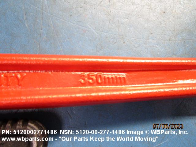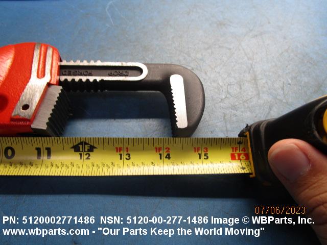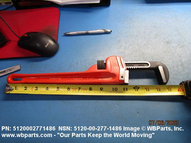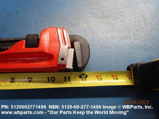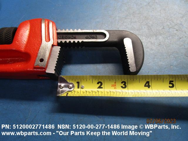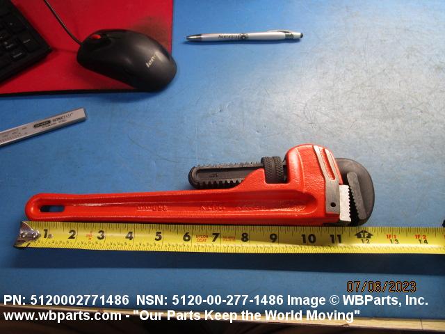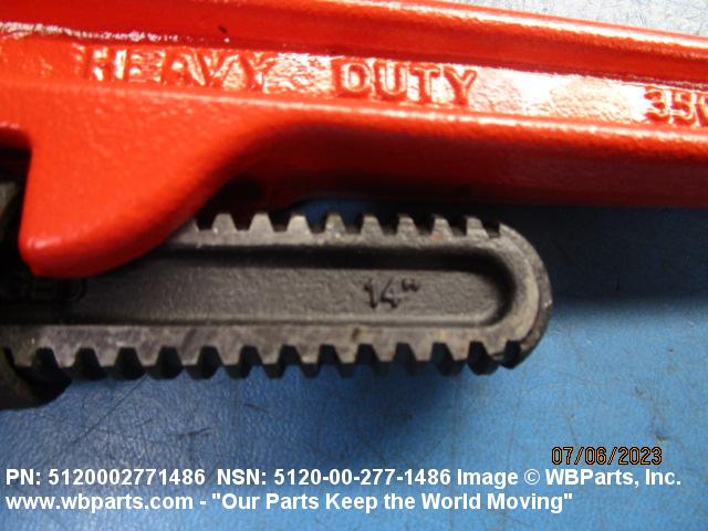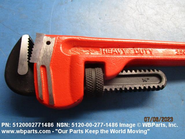 5120-00-277-1486 A wrench having serrated jaws, chain, girth, or strap at one end. It is designed for installing or removing pipe or pipe fittings. Excludes WRENCH, PIPE, INTERNAL GRIPPING.