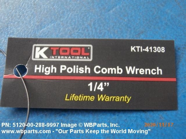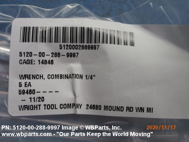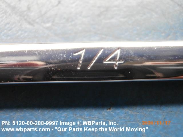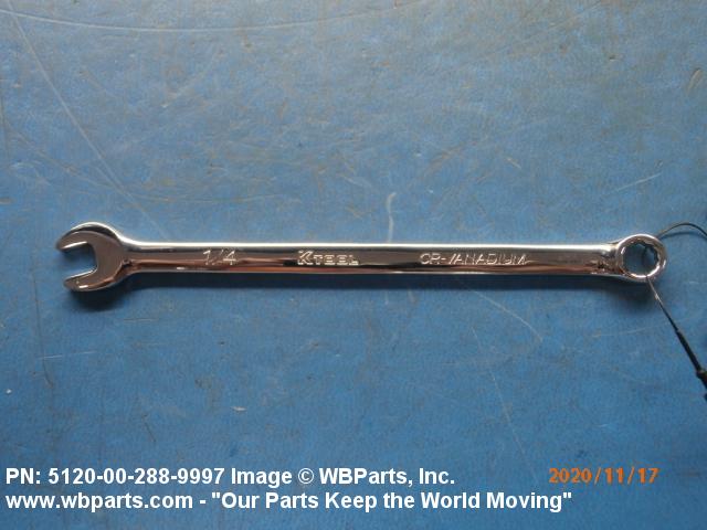 5120-00-288-9997 A nonadjustable wrench having a box wrenching feature on one end and an open end wrenching feature on the other end. Excludes WRENCH, BOX and WRENCH, OPEN END.