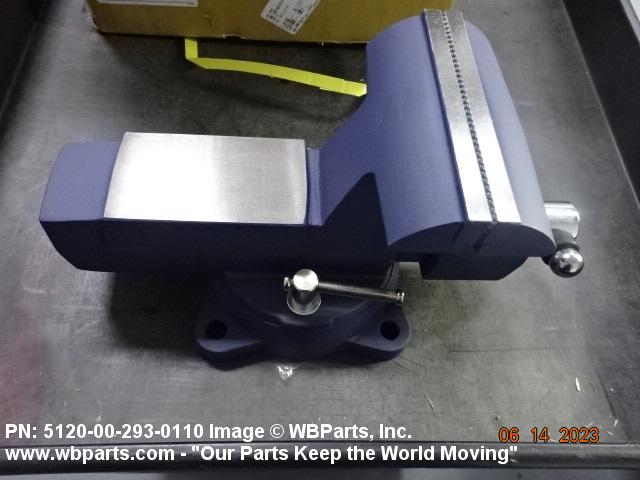 5120-00-293-0110 A clamping device consisting of a base, one stationary and one manual screw or hydraulic ram actuated jaw, each with integral or detachable pipe holding (serrated) jaws, and one or more guide bars or rods. Designed to be clamped or bolted to a bench, table or the like.