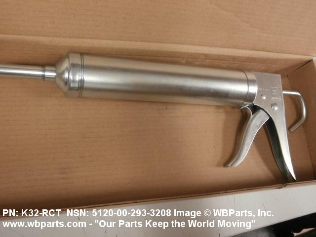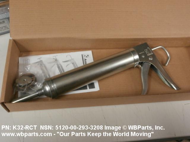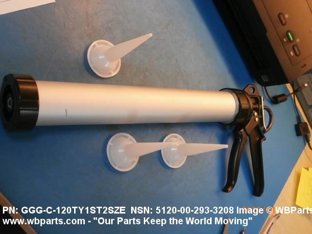 5120-00-293-3208 A hand tool having a barrel type container for holding a sealing or adhesive type material which is dispensed through an end nozzle by a hand-controlled plunger, a ratchet-type trigger pressure control plunger, or a powered plunger controlled by a trigger-type operation.20251200032Hand Tools, Nonedged, Nonpowered51300024Hand Tools, Power Driven