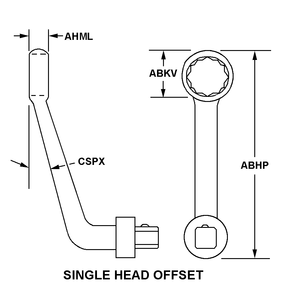 | WRENCHING END OFFSET ANGLE | 71.0 DEGREES NOMINAL |
