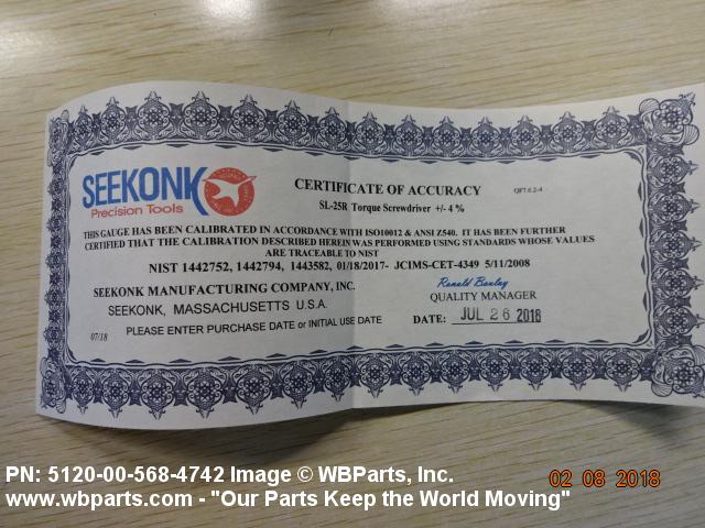 5120-00-568-4742 A manual tool for tightening vairous fasteners to a precise torque value. Consists of a handle and drive to accommodate female square drive sockets, screwdriver bits, and other types of wrenching adapters. Torque value may be manually set and adjusted by user of may be provided as preset for production line use. A signaling device is generally provided to indicate when set torque value is reached. Handle is spun in-line with axis of fastener rotation to apply torque. For items with handles that are swung at right angle to axis of fastener rotation to apply torque, see WRENCH, TORQUE.2025120000065150057Medical and Surgical Instruments, Equipment, and Supplies