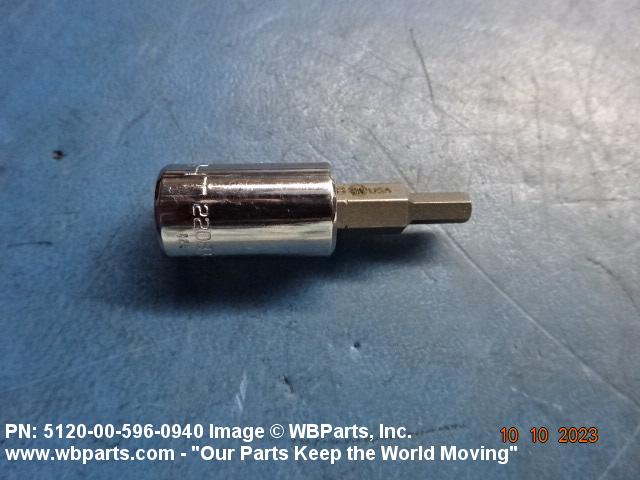 5120-00-596-0940 An attachment designed to fit over the square external drive end of a HANDLE, SOCKET WRENCH; WRENCH, TORQUE; and the like consisting of one or two-piece configuration having a screw driving tip on one end. Excludes BIT, SCREWDRIVER.20251200032Hand Tools, Nonedged, Nonpowered51300024Hand Tools, Power Driven