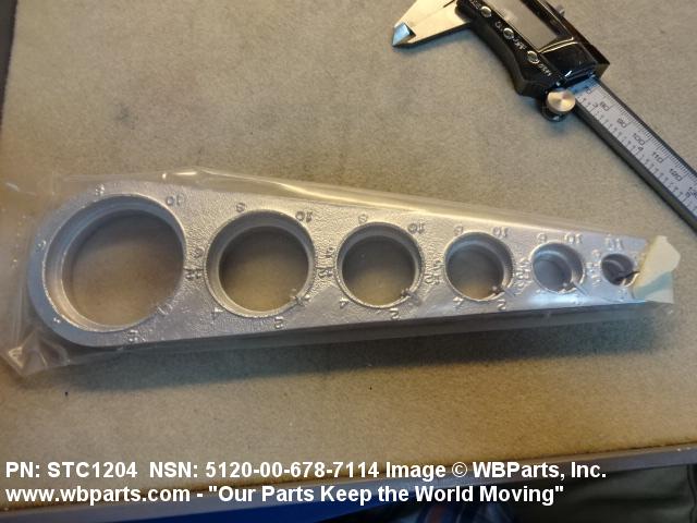| GENERAL CHARACTERISTICS ITEM DESCRIPTION | ALUMINUM ALLOY; 6 HOLES WITH DIAMETERS OF 0.365, 0.555, 0.805, 1.050, 1.300 AND 1.770 IN.; POSITION MARKINGS 2, 4, 6, 8, 10 AND 12 AROUND EACH HOLE; 1/2 IN. THICK X 9-1/16 IN. LG |