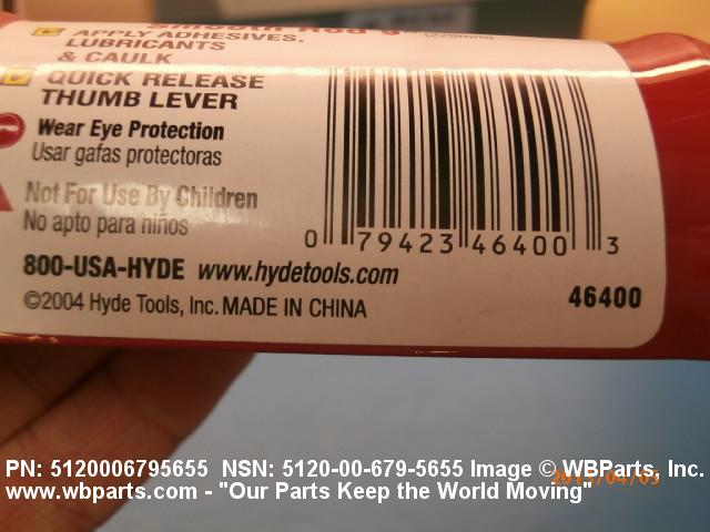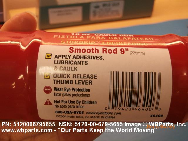 5120-00-679-5655 A hand tool having a barrel type container for holding a sealing or adhesive type material which is dispensed through an end nozzle by a hand-controlled plunger, a ratchet-type trigger pressure control plunger, or a powered plunger controlled by a trigger-type operation.20251200032Hand Tools, Nonedged, Nonpowered51300024Hand Tools, Power Driven