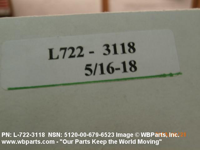 Part Alternates: C-722 5/16-18, C7223118, C-722-3118, C72251618, L7223118, L-722-3118, 5120-00-679-6523, 00-679-6523, 5120006796523, 006796523
