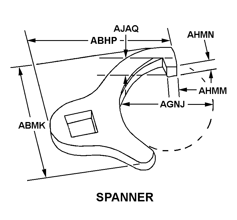 5120-00-688-7867 A wrench component which may contain notches within an open end, box, open wall box, 2 or 3 lug open end wrench opening having a square, internal, fixed, eccentric drive parallel to the wrench opening, designed to receive the external drive end of a HANDLE, SOCKET WRENCH. Items having an open end type wrench opening may have a second drive opening at right angles to the wrench opening. See also SOCKET, CROWFOOT WRENCH HEAD and HEAD, CROWFOOT SOCKET WRENCH.